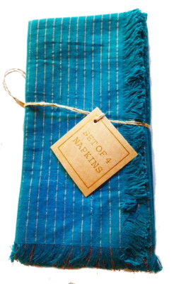 Anthropologie Shining Pinstripe Napkins 4 Bundle Blue Gold