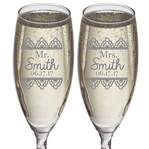 Set Of 2 Personalized Wedding Gift Champagne Flutes Lace Design
