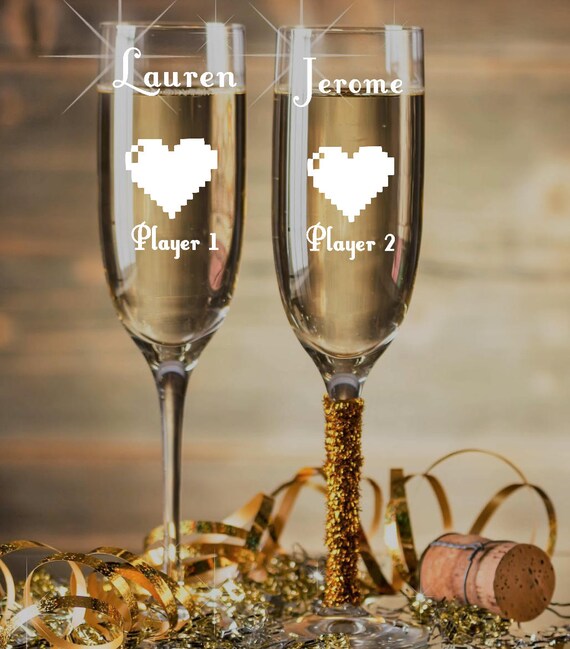 Player 1 Player 2 Champagne Glasses Nerd Wedding Gift Geek Etsy