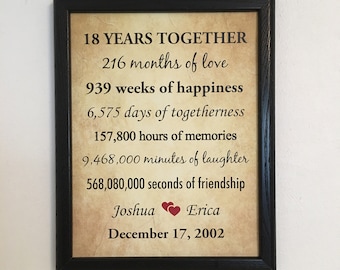 18th Anniversary Gift 18th Wedding Anniversary Gift Gift Etsy
