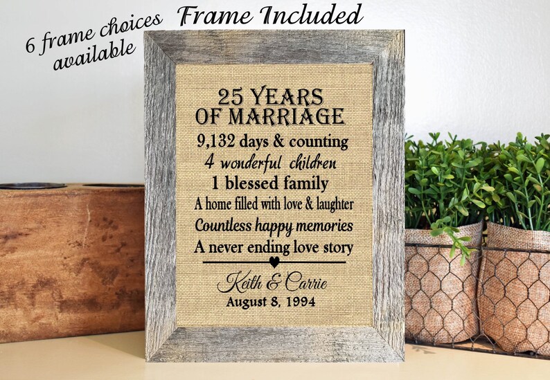 Framed Personalized 25th Anniversary Gifts 25th Wedding Etsy