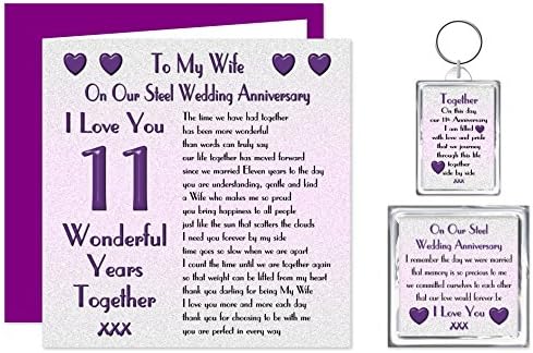 My Wife 11th Wedding Anniversary Gift Set Card Keyring Fridge