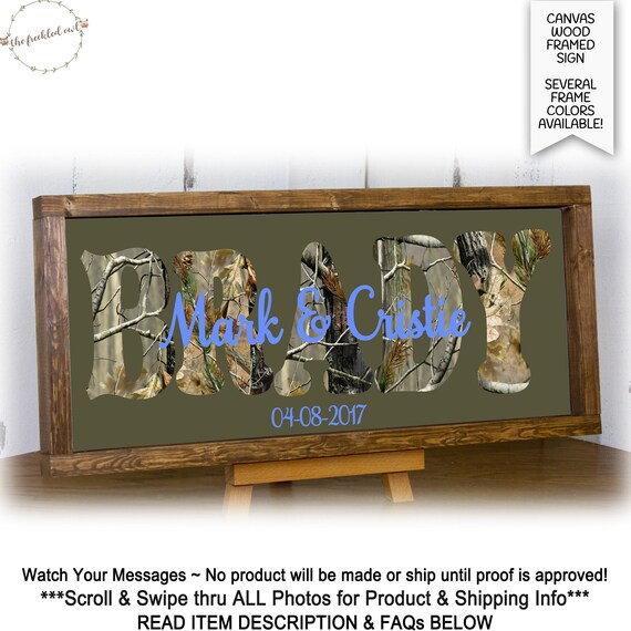 Camouflage Wedding Gift Camoflage Last Name Wood Canvas Sign Etsy