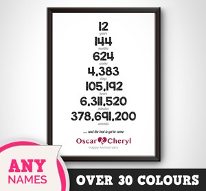 Personalised 12th Wedding Anniversary Print Years Gift Present